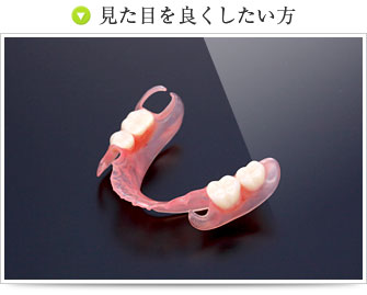 金属のバネを使いませんので、入れ歯を入れていることに気づかれません。