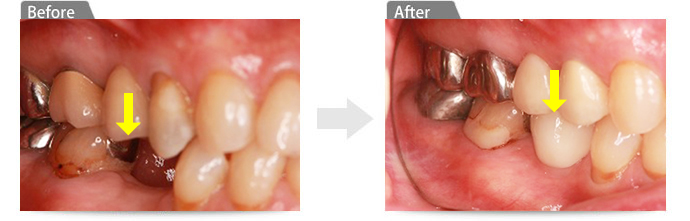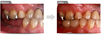 上記左はインプラント術前、右はインプラント術後の画像です。術後は半年に1度のメンテナンス・クリーニングが大切です。他の歯のメンテナンスももちろんお勧めします。患者様に長く使って欲しい気持ちでこだわってインプラント治療を行っているので、メンテナンスを忘れないで大切に使って欲しいと思います。