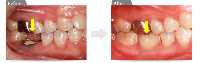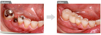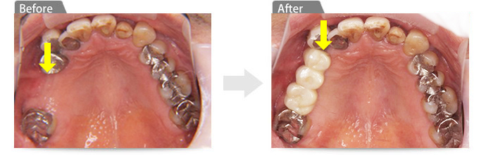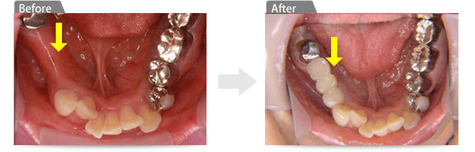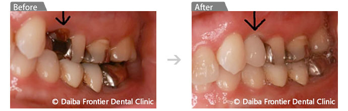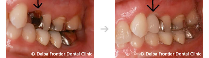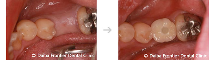 ・見た目が綺麗なまま劣化することのない、ジルコニアで作成したダイアモンドセラミックのブリッジで完成