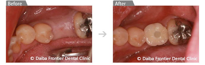 虫歯のため歯が折れてしまい、抜歯が必要となりました。抜歯部位前後の歯を削ってブリッジはしたくない、また入れ歯もしたくないとのことで、インプラントをご希望でした。