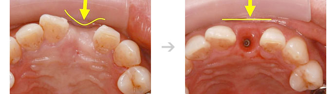 症例1仕上がりの美しい 前歯インプラント(ワンピースインプラント、ツーピースインプラントの違い)
