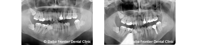 インプラント治療後。術中にも撮影出来るレントゲンCTを完備しているため、予定部位へ安全、正確にインプラントを行う事が可能です。